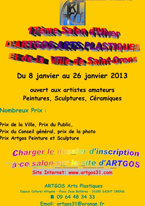 - Janvier 2013 : Artgos, Saint Orens de Gameville (31)